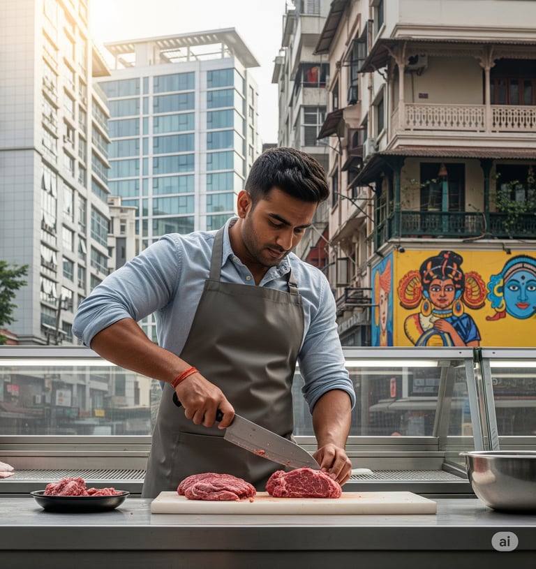 Fresh Jhatka-cut meat—available in Bengaluru & Hyderabad.